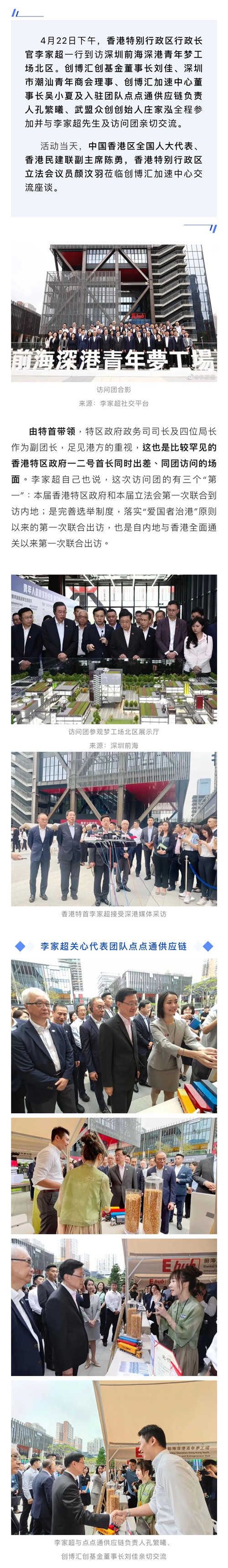 李家超率团参观前海深港青年梦工场北区,与创博汇加速中心董事长吴小夏等亲切交流