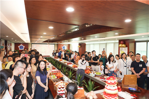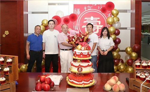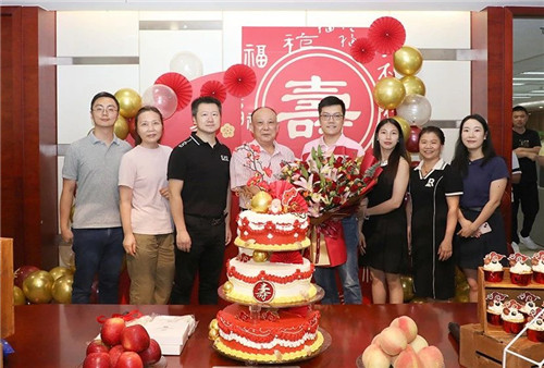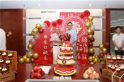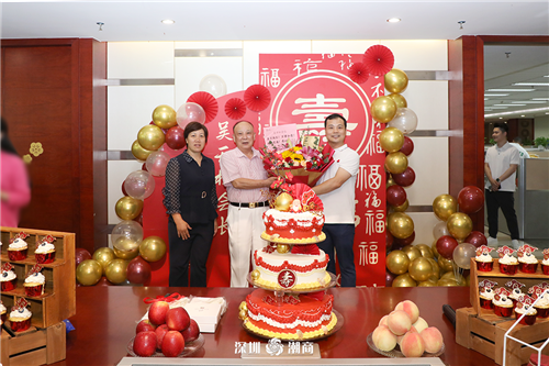 各单位代表纷纷送上鲜花、贺礼和祝福,大家齐唱生日歌,将美好和诚挚的祝福献给和蔼可亲的吴开松会长。