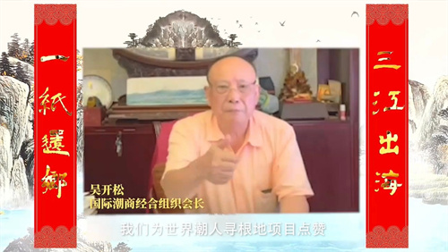 国际潮团总会执行主席陈幼南、国际潮商经济合作组织会长吴开松通过线上方式祝贺“寻根之旅”夏令营活动隆重举行。