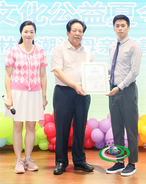 据悉,本次“寻根之旅”夏令营活动由壹基金林氏潮汕母亲慈善基金赞助。开营仪式上举行了捐赠仪式,国际潮青联合会名誉会长李茂水、副会长李红梅代表活动主办方向壹基金林氏潮汕母亲慈善基金代表林逸宙颁发感谢状。
