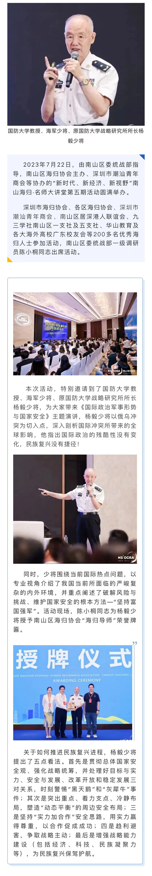 海军少将杨毅为深圳200多名海归授课 深圳潮青商会组团参加