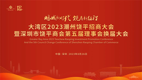 十八载春秋,铸就深饶商精神。2023年8月26日,鹏城新时代,饶商新征程 | 大湾区2023潮州饶平招商大会暨深圳市饶平商会第五届理事会换届大会在深圳市大中华喜来登酒店隆重召开。