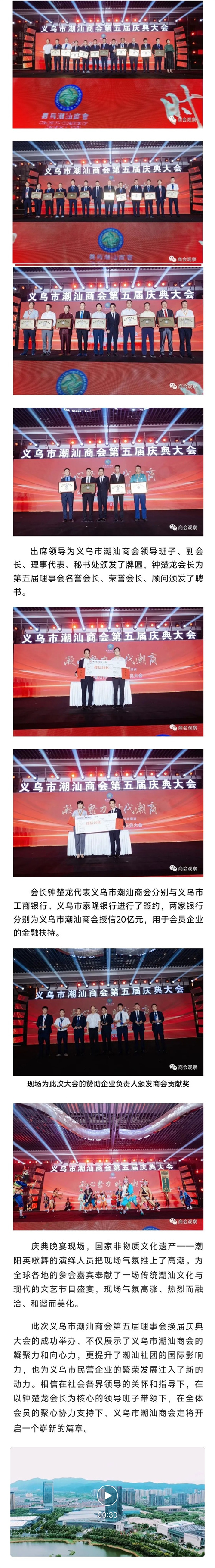 深圳潮青商会出席义乌潮汕商会第五届庆典大会 祝贺钟楚龙接任第五届会长