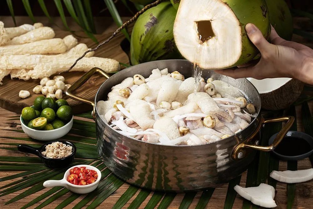 四季椰林文昌鸡产业园自首店开业以来,四季椰林始终坚持本味,主张回归天然,优选120天山林放养,45天科学笼养海南文昌鸡,泰国椰皇水和海南椰青水,黄金配比而成就一锅鲜甜营养的椰子鸡火锅。