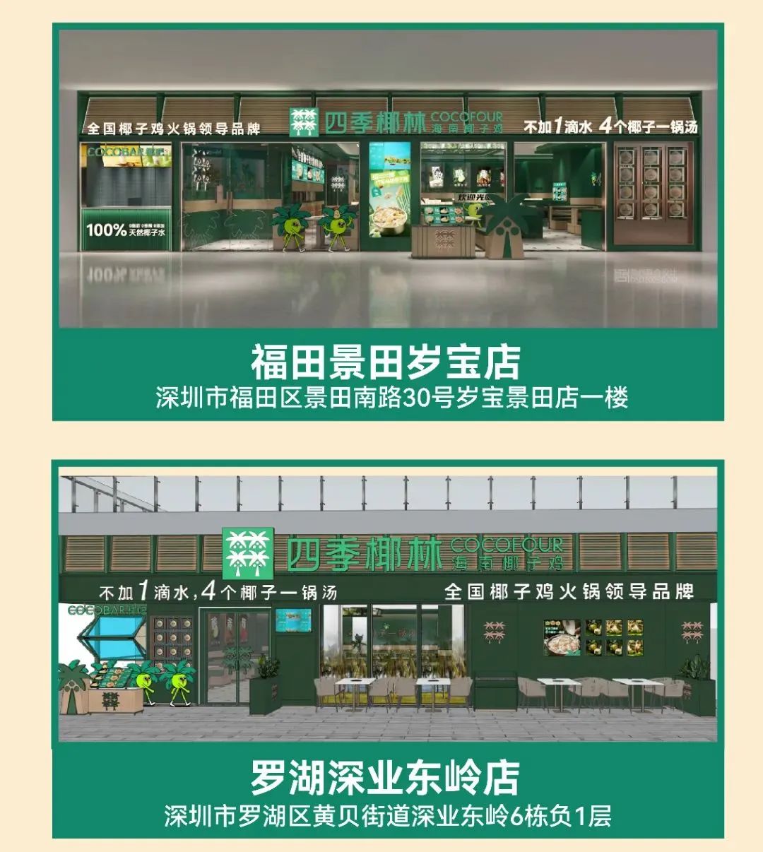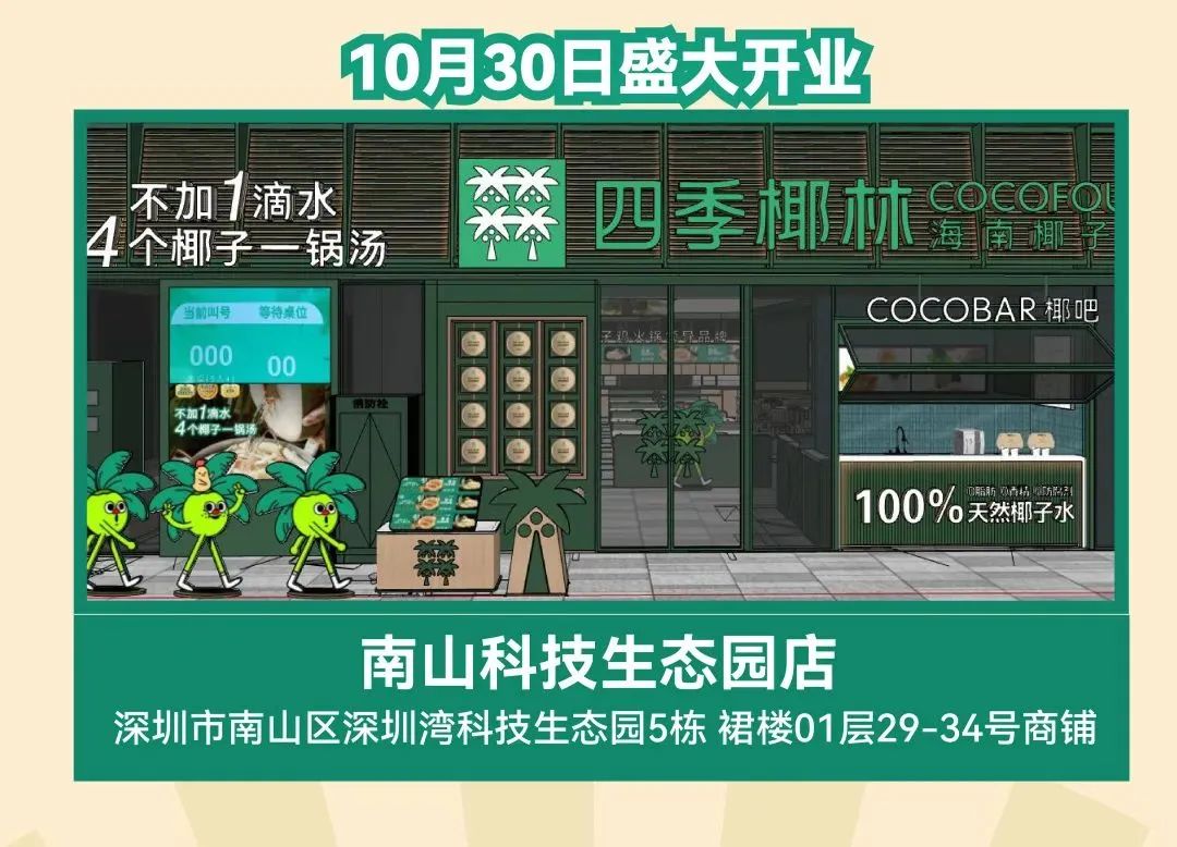 今年10月,四季椰林7店连开,全国门店突破50家!四季椰林是深圳市四季椰林餐饮管理有限公司旗下餐饮品牌,专注烹制以“海南椰子鸡”为代表菜品的椰风料理。2013年8月,四季椰林第一家品牌直营店在深圳罗湖区喜荟城开业,并逐步带领椰子鸡火锅成为深圳的“市菜”。