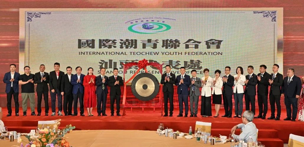 受国际潮青联合会会长李奕标委托,执行会长、马来西亚潮州公会联合会青年团执行顾问黄瑞雷拿督出席大会,并为国际潮青联合会汕头代表处揭牌。