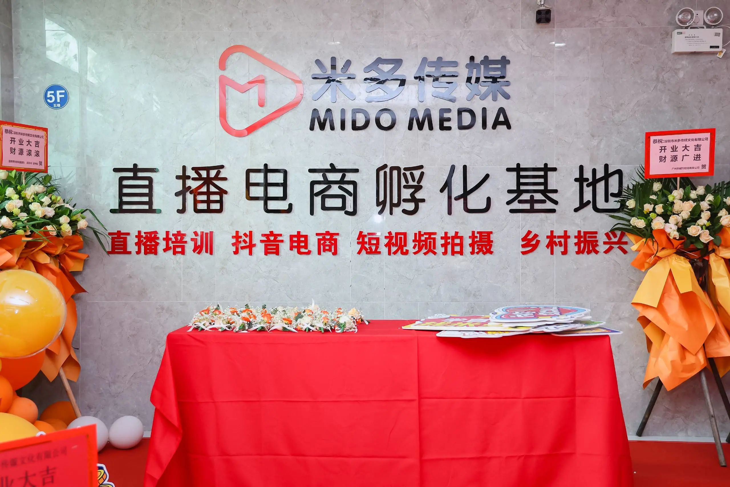 鲜花簇拥,醒狮舞动,开业庆典现场高朋满座,人潮涌动,在一片红火的氛围中,主持人邀请嘉宾和企业负责人为米多传媒开业仪式进行剪彩,一同见证米多传媒盛大开业这一重要的里程碑。
