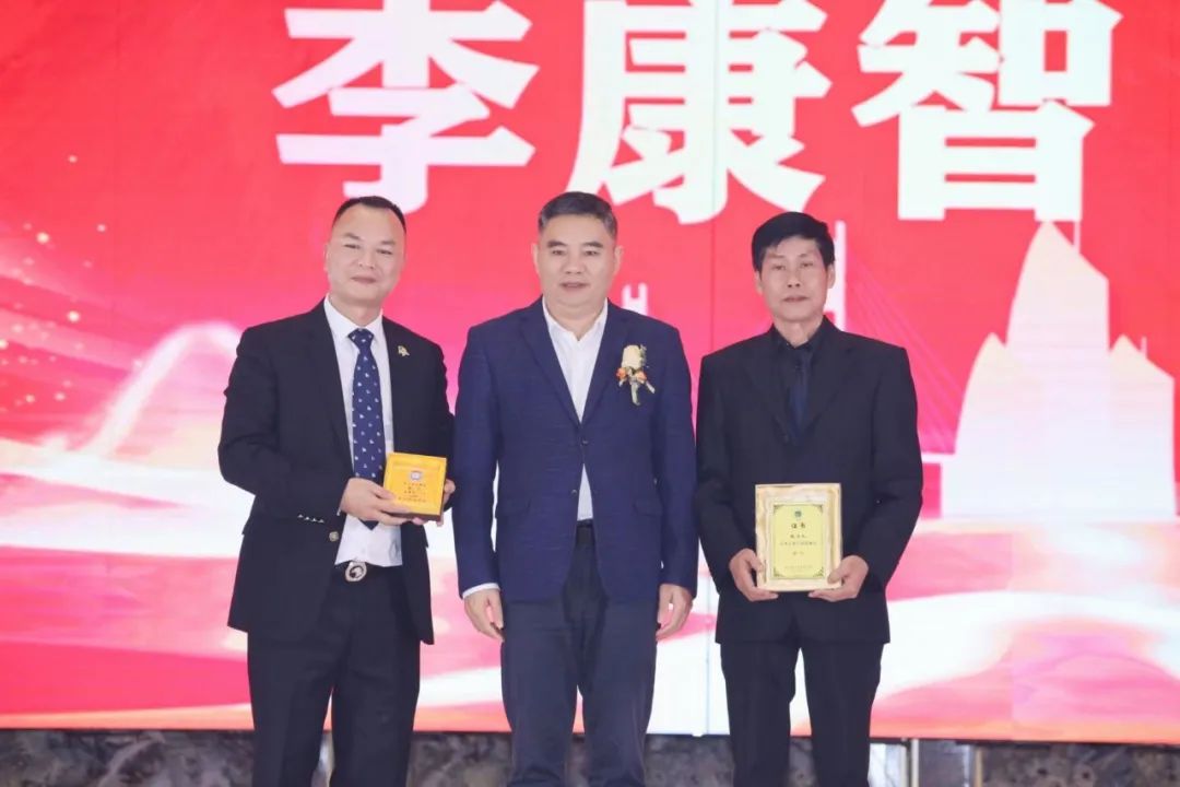 姚作建为湛江潮人海外联谊会第七届理事会会长林力人、湛江潮汕商会第三届理事会会长李康智授牌