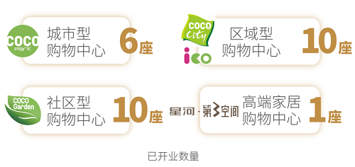 作为大湾区领先的商业运营服务供应商,经过近20年的发展,集团形成了市场知名且完整的品牌体系。截至2023年12月31日,城市型购物中心COCO Park已开业6座,区域型购物中心COCO City已开业10座,社区型购物中心COCO Garden已开业10座,高端家居购物中心星河·第三空间已开业1座。
