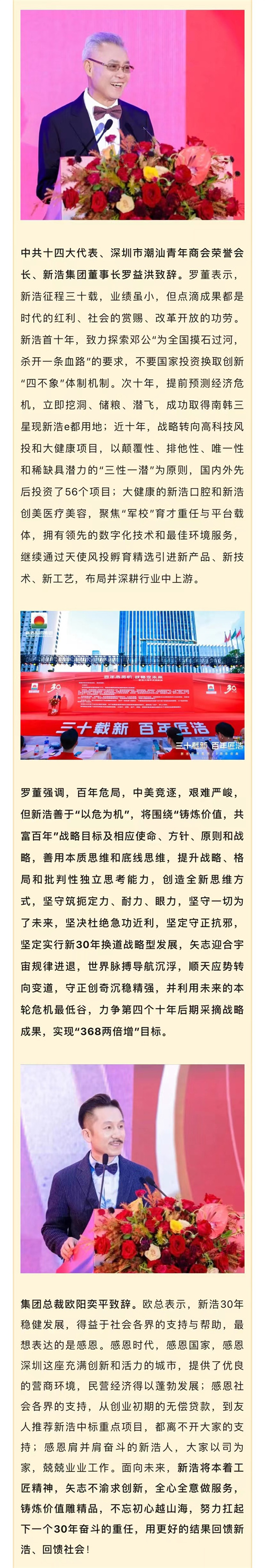 倾听罗益洪董事长创新战略精彩演讲|深圳潮青商会代表出席新浩集团“三十载新,百年匠浩”30周年庆典