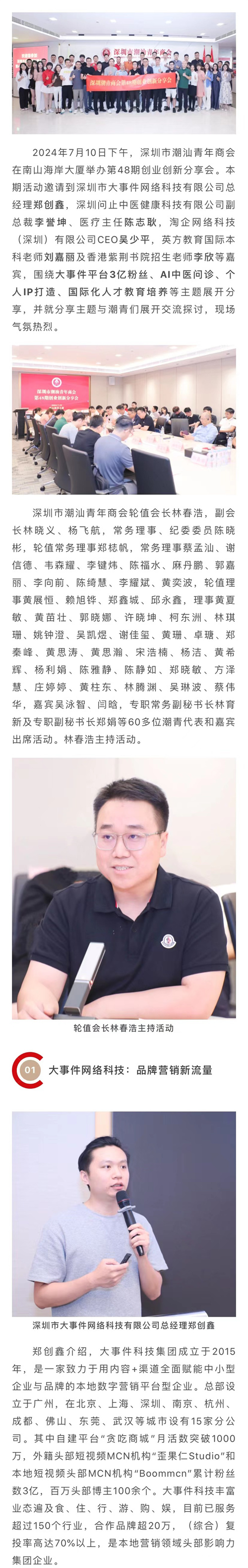 大事件3亿粉丝、AI中医问诊、个人IP打造……深圳潮青商会举办第48期创业创新分享会
