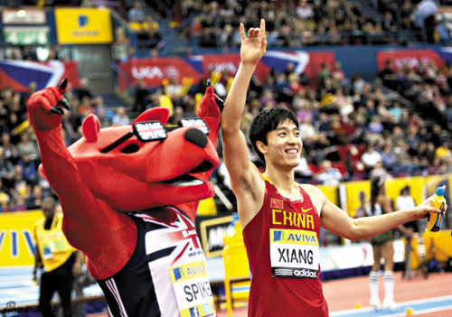 刘翔新年第一跑完胜罗伯斯 露出招牌笑容