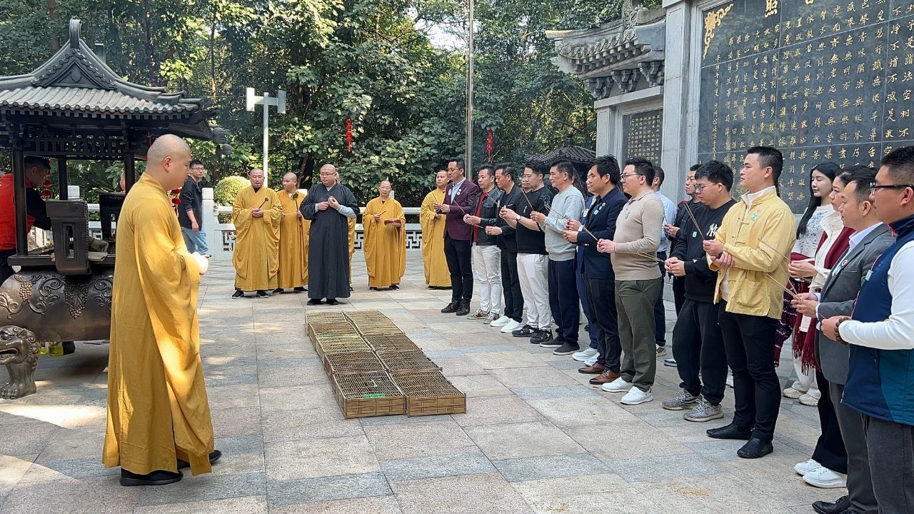 2024年12月31日下午,深圳市潮青商会公益基金会潮仁志愿服务队在深圳星河圣境•般若禅寺举行“千鸟放生 祈福新年”活动。潮仁服务队队员们在此次活动上将1000只观音鸟放归野外,般若禅寺的大法师加持诵经放生仪轨。此次放生是潮仁服务队正式成立以后举行的第一场公益活动。