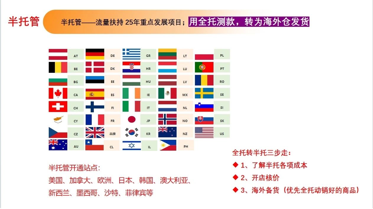 她介绍,2025年TEMU平台重点方向,一是区域以欧洲、中东、拉美、日韩为核心。重点国家方面,美区方向包括澳大利亚、墨西哥;欧区方向包括德国、西班牙、意大利;中东方向包括沙特、土耳其、阿联酋;亚洲方向包括韩国、日本、菲律宾;拉美方向包括南非、哥伦比亚、巴西。二是通过品牌绿通、C端流量扶持、品牌认证等对品牌商家进行扶持。品牌电商将拥有如下权益:1.消费者端平台打标蓝标透出,平台背书,提升店铺转化率;2.搜索流量加权加持,店铺快速起量,增速明显;3.特享比价权益。品牌店铺的比价只比同店铺,不与平台同款比价;4.品牌专属活动,仅为品牌商家特定的活动;5.品牌团队1V1定向沟通和扶持;6.品牌专属流量入口。三是通过流量扶持2025年重点发展项目、用全托测款、转为海外仓发货等方式重点发展半托管模式。半托管开通站点包括美国、加拿大、欧洲、日本、韩国、澳大利亚、新西兰、墨西哥、沙特、菲律宾等。四是通过产业带集群孵化,深入产业带,扶持核心商家,打造精英店铺。