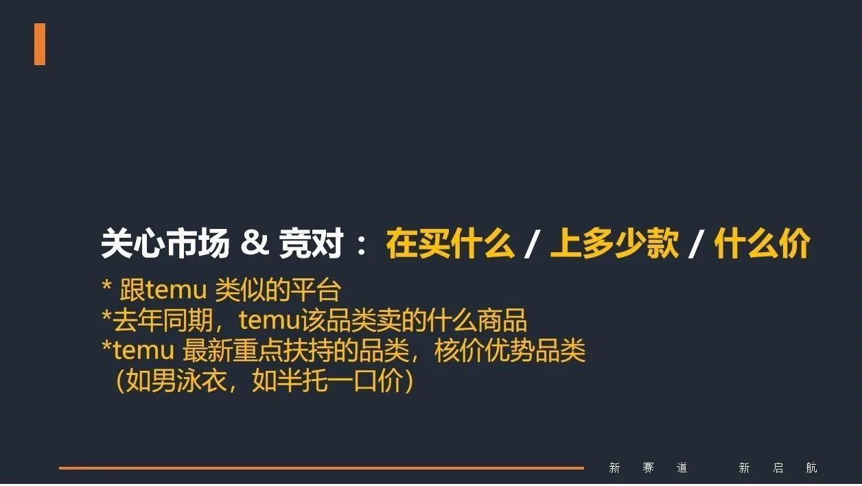 TEMU玩具运营专家介绍了TEMU的流量分布逻辑。他说,流量分布一是搜索,用户通过商品关键词产生的购买行为,即“人找货”。二是个性化推荐,平台用户在TOP榜单、各活动频道、类目分类页、搜索分类页、营销活动页、详情页相似品等板块,千人千面。三是活动流量,通过平台或者商家举办的秒杀、上新大促、断码清仓、类目活动、节日主题、主推商品等流动带动流量。四是通过社交媒体、广告外投、分享裂变等方式产生的流量。