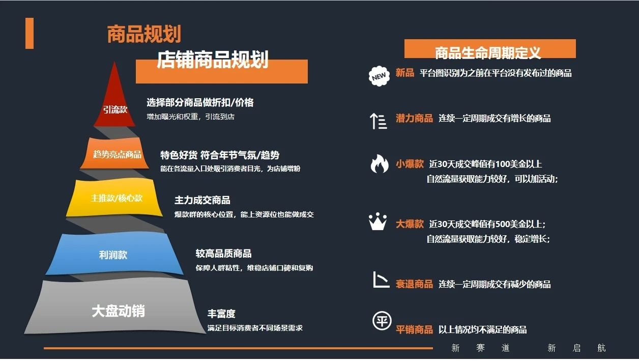 她介绍了男装各类目生命周期、上新节点,认为商品要注重季节的节奏。商品上对季节,事倍功半,通常是提前90天备货;店铺上新的节奏要快;还要注重不同地区的重要的节日的营销。持续上新可以为店铺和爆款打造带来持续的流量,雪球越滚越大;取好商品标题,优化关键词图片,首图精美,轮播场景图、高清视频;同款核价性价比最高,多SKU增加变体链接,把价格拉下去,增加权重和流量;良好的售后、履约等都是商品权重的加分项;稳定充足的库存增加活动资源位获取能力,断货会大幅度削弱链接权重。做好以上这些细节,都有助于打造爆款商品。