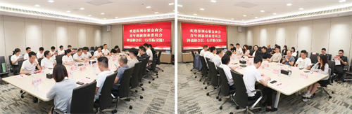 2025年6月6日下午,深圳市紫金商会青年创新创业委员会(以下简称“紫青会”)会长钟嘉彬率团到访深圳市潮汕青年商会,驻会会长、党委书记黄坚泰,轮值会长林舜州、林子超率商会轮值团队热情接待。双方在南山海岸大厦座谈交流。