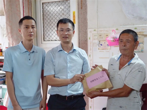 获悉郭英育一家的情况后,郭铭远董事长迅速部署帮扶行动。一方面,亲自带队前往慰问;另一方面,组织铭译投资全体职工开展线上捐款活动,汇聚企业力量为病患家庭筹措资金支持。同时,积极与潮阳区政府协调沟通,为郭英育一家申请政策帮扶,推动政府资源与社会援助形成合力。