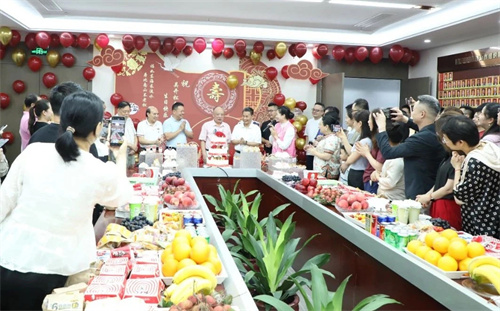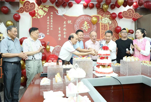 参加庆贺活动的其他单位代表们也热情洋溢,纷纷为吴会长献上鲜花、贺礼和深深的祝福。现场洋溢着欢乐的气息,充满了温馨与喜悦,大家齐声唱响欢快的生日歌,将真挚的祝愿献给吴开松会长,祝愿他“福如东海长流水,寿比南山不老松”。