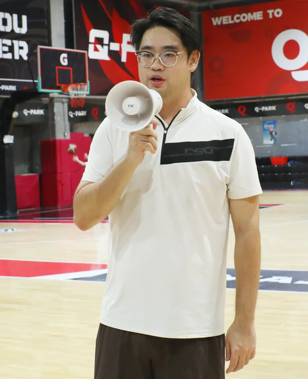 比赛开始前,球员们进行充分热身,或拉伸四肢,或练习投篮,随后集合抽签分为12组,摩拳擦掌等待比赛开始。