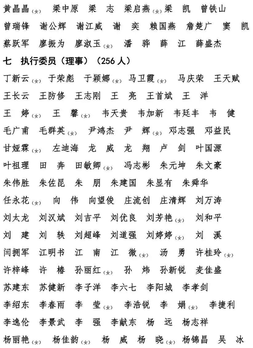 第九届执行委员会(理事会)名单
