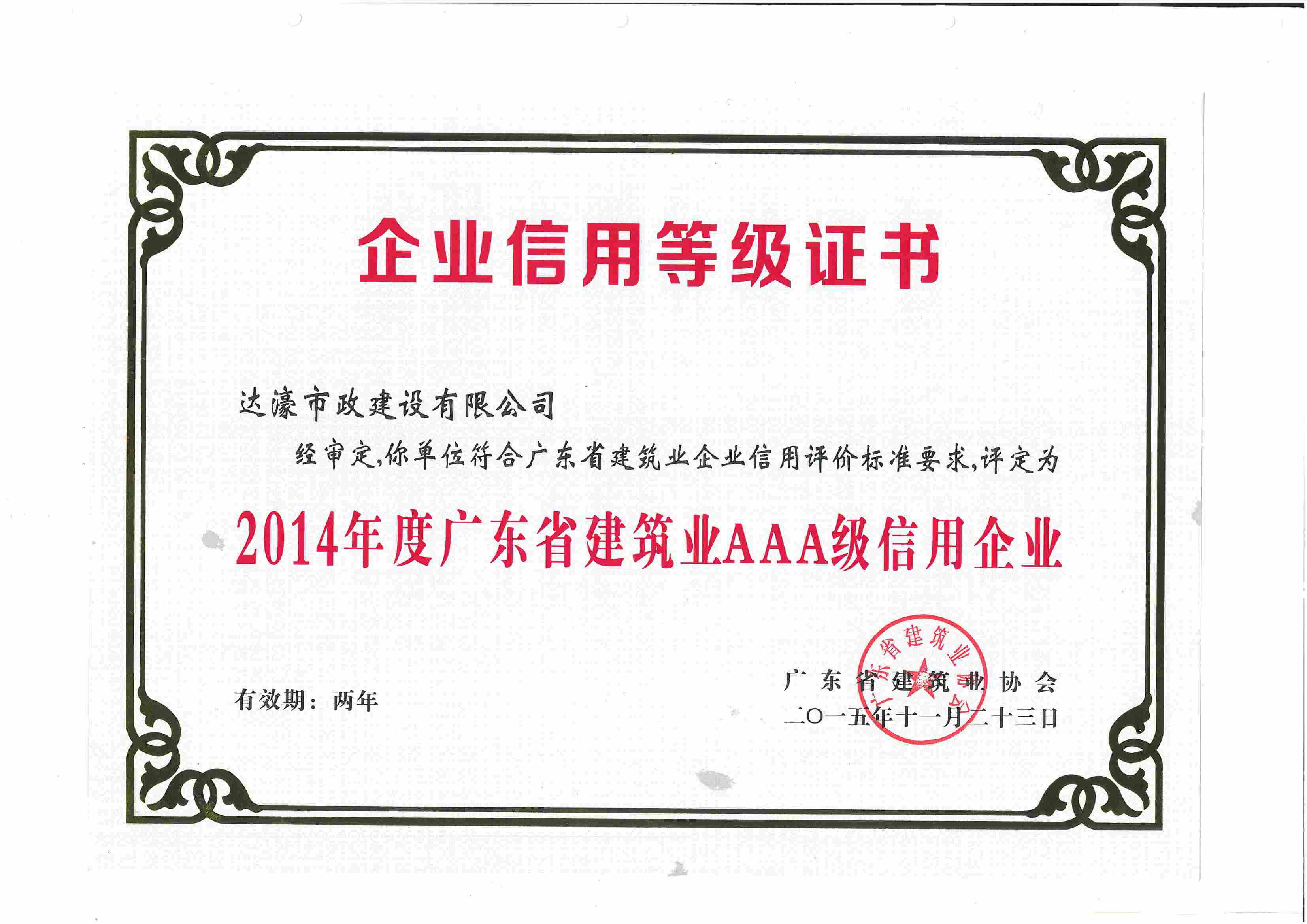 达濠市政建设有限公司喜获信用企业等两项大奖