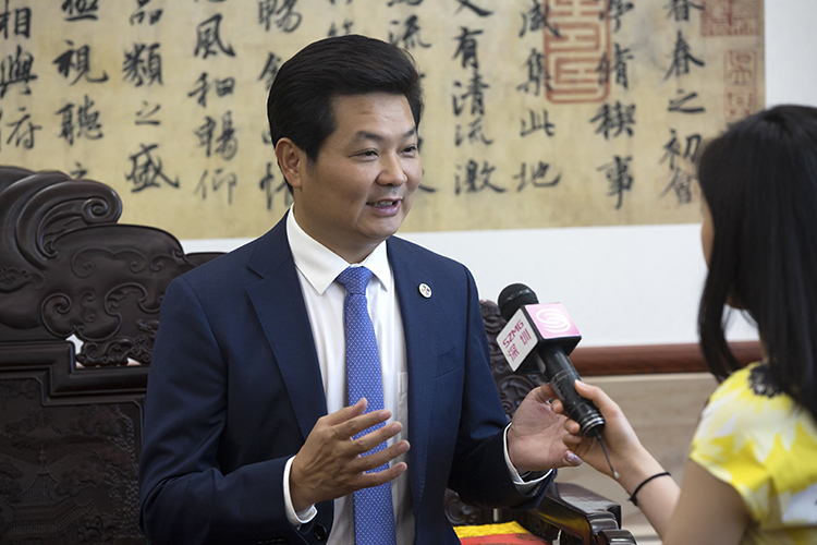 宝鹰集团董事局主席古少明就开拓国际市场话题与深圳卫视记者交流